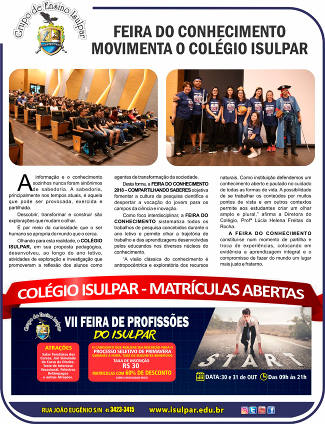 FEIRA DE PROFISSÕES DO ISULPAR CHEGA À SUA 7ª EDIÇÃO
