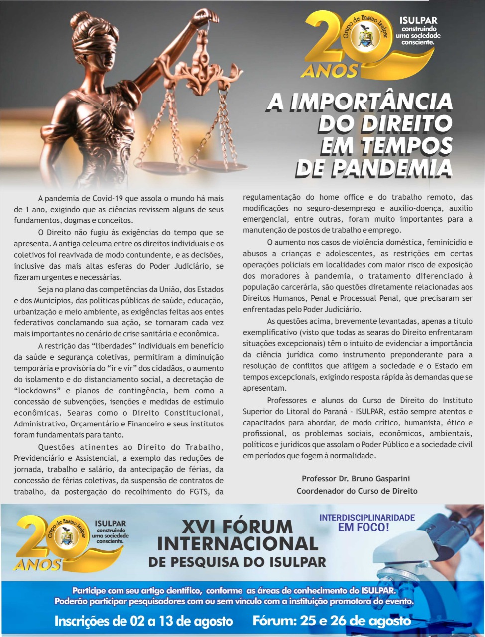 A importância do Direito em tempos de pandemia